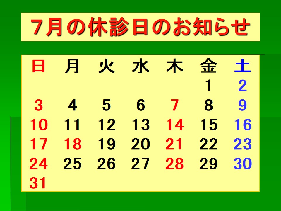 青色…土曜日は17時まで診療