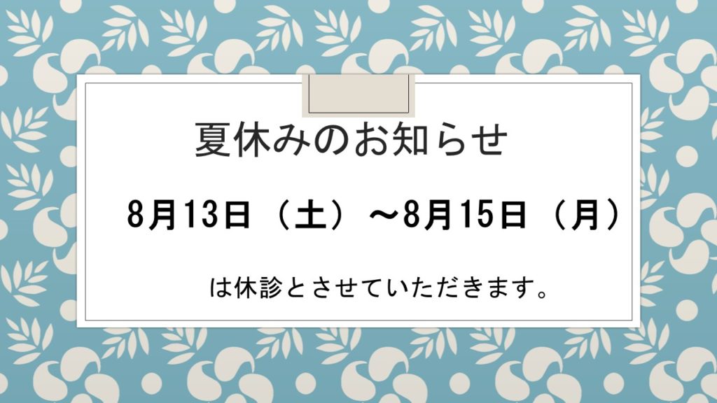 8月13日(土)~15日(月)は夏休みとさせていただきます。
