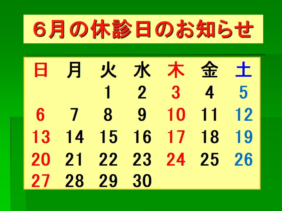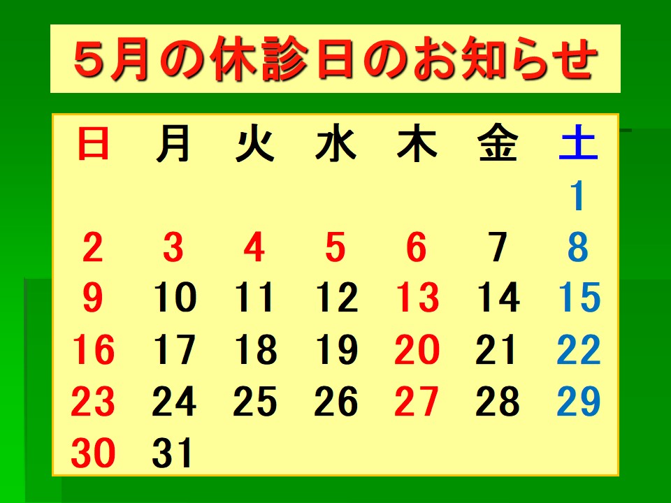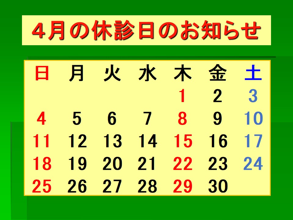 木、日、祝日は休診日。
