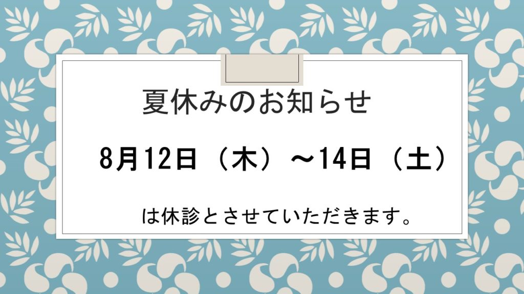 夏休みは8月12(木)~15日(日)とさせていただきます。