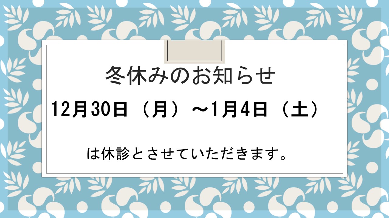 12月30日(月)~1月4日(土)までは冬休みとさせていただきます。